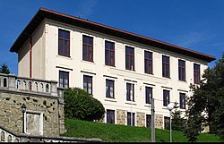Die Schule wurde 1876 errichtet und 1911 umgebaut. Betont ist der Mittelrisalit mit dem Portal. | BDA-Hist.: Q38018057 Status: § 2a Stand der BDA-Liste: 2024-06-15 Name: Volksschule GstNr.: 111/44 Volksschule Weidling (Klosterneuburg) |