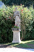Der Bildstock des hl. Johannes Nepomuk an der Nordseite der Kirche ist mit 1739 bezeichnet. | BDA-Hist.: Q38018136 Status: § 2a Stand der BDA-Liste: 2024-06-15 Name: Figurenbildstock hl. Johannes Nepomuk GstNr.: 145/2 Johannes Nepomuk (Höflein an der Donau) |