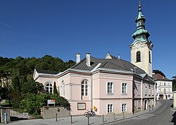 | Bürgerhaus, Berghof , Kierlingerstraße 13, 3400 Klosterneuburg, Austria Dieses Bild zeigt das in Österreich unter der Nummer 8804 denkmalgeschützte Objekt. ( Commons , de , Wikidata ) | Eigenes Werk | Clemens PFEIFFER | Datei:Bürgerhaus, Berghof (Klosterneuburg) 01.jpg | |