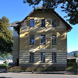 Das Haus mit Jugendstilfassade stammt von Karl Seiz aus dem Jahr 1909 und war ursprünglich ein Privathaus, bevor es als Pfarramt adaptiert wurde.[7] | BDA-Hist.: Q38102653 Status: § 2a Stand der BDA-Liste: 2024-06-15 Name: Pfarrhof, Evang. Pfarramt GstNr.: .576 Pfarrhof, Evang. Pfarramt Knittelfeld |