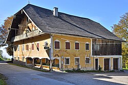 Das Moarhäusl zum Gut Guggenthal dürfte das alte Haupthaus der Meierei von Schloss Guggenthal sein. Es gehört zum Altbestand des Anwesens (im Kern vielleicht barock oder älter), und ist seitlich durch neuere Zubauten ergänzt. | BDA-Hist.: Q64512821 Status: Bescheid Stand der BDA-Liste: 2024-06-15 Name: sog. Moarhäusl, Stöckl zum Braugasthof GstNr.: 979/5 Braugasthof Guggenthal |