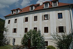 Das Haus am nördlichen Ortsrand verfügt über einen Keller, der ursprünglich das Erdgeschoß war. Der Blockbau des straßenseitigen Teils ist relativ sicher auf das 14. Jahrhundert zu datieren. Das Dreipassfenster im Obergeschoß stammt aus dem 14. Jahrhundert, die Spitzbogenschlitze aus der zweiten Hälfte des 13. Jahrhunderts. Im 16./17. Jahrhundert wurde der mittelalterliche Bau erweitert. Im Inneren befinden sich Räume mit Kreuzgratgewölben.[10] | BDA-Hist.: Q38007014 Status: Bescheid Stand der BDA-Liste: 2024-06-15 Name: Wohn- und Wirtschaftsgebäude GstNr.: .66 |