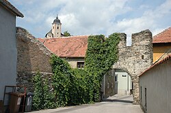 Erhaltene Torbefestigung (auch Markttor genannt) in der Josefigasse mit drei Zinnen.[4] | BDA-Hist.: Q38107730 Status: § 2a Stand der BDA-Liste: 2024-06-15 Name: Befestigungsanlage GstNr.: 1835/1 |