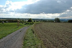 Fundstelle der Venus vom Galgenberg: Die kleine Frauenstatuette aus grünem Serpentin aus der archäologischen Kultur des Aurignacien. Mit einer Radiokohlenstoffdatierung der Fundschicht von mehr als 30.000 BP ist sie neben der 2008 gefundenen Venus vom Hohlen Fels die weltweit älteste Venusfigurine.[5][6] Die Statuette wurde bei der Ausgrabung eines Wohnplatzes von Jägern aus der Zeit des Aurignaciens (jüngere Altsteinzeit) am 23. September 1988 gefunden. Der Fundort liegt auf dem Galgenberg bei Stratzing, unmittelbar auf der Gemeindegrenze zwischen Stratzing und Krems-Rehberg.[7] |