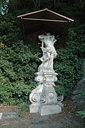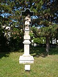 Die 1704 gestiftete Figur des Johannes Nepomuk (Brückenheiliger) stand früher neben der abgetragenen eisernen Brücke zwischen zwei Linden.[2] Im Zuge der Erneuerung der Brücke über die Krems (1977) wurde die Figur auf der anderen Straßenseite, bei der Abzweigung der Straße nach Alt-Rehberg, aufgestellt.[3] | BDA-Hist.: Q38086403 Status: § 2a Stand der BDA-Liste: 2024-06-15 Name: Figur hl. Johannes Nepomuk GstNr.: 1836/6 |