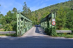 Die Schmittbrücke wurde im Zweiten Weltkrieg zur Erschließung der ehemaligen Schmittfabrik errichtet. Sie überquert die Krems mit einer Spannweite von 27 m und besteht aus einer Stahlkonstruktion mit zwei parallelgurtigen Fachwerkträgern, unter der Fahrbahn liegenden Quer- und Längsträgern sowie den zugehörigen Verbänden. Die Fachwerkträger haben eine Höhe von 4,2 m und einen Achsabstand von 5,1 m, so dass die lichte Weite 4,3 m beträgt und die Brücke nur im Einbahnverkehr befahrbar ist. Im Jahr 1990 wurde eine Totalsanierung durchgeführt.[8] | BDA-Hist.: Q38107683 Status: § 2a Stand der BDA-Liste: 2024-06-15 Name: Straßenbrücke, Schmittbrücke GstNr.: 1851 Schmittbrücke (Krems an der Donau) |