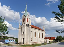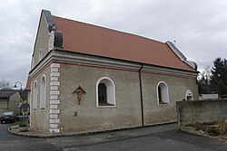 | Die katholische Filialkirche hl. Lambert in Hautzendorf, ein Ortsteil der niederösterreichischen Gemeinde Kreuttal .Die Kirche befindet sich auf einer leicht erhöhten Lage im Nordosten des Dorfes. Das Langhaus wurde 1787 errichtet und 1951 erweitert. | Eigenes Werk | C.Stadler/Bwag | Datei:Hautzendorf - Kirche.JPG | |