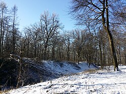 Der 4,7 km lange Wall im Kreuttaler Wald umgrenzt ein Gebiet von ca. 80 Hektar mit bis zu 12 Meter hohen Erdwällen. | BDA-Hist.: Q38004623 Status: Bescheid Stand der BDA-Liste: 2024-06-15 Name: Befestigte Siedlung Türkenschanze GstNr.: 1671/1, 1671/2, 1032/1, 1032/3, 1672 |