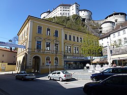 | Bozner Platz 1; Alte Bezirkshauptmannschaft mit Umfassungsmauer und Laube Dieses Bild zeigt das in Österreich unter der Nummer 123567 denkmalgeschützte Objekt. ( Commons , de , Wikidata ) | Eigenes Werk | Rufus46 | Datei:Bozner Platz 1 Bezirkshauptmannschaft Kufstein-1.jpg | |