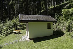 Der einfache Holzbau mitten im Wald wird als Lourdeskapelle verwendet.[18] | BDA-Hist.: Q38142478 Status: § 2a Stand der BDA-Liste: 2024-06-15 Name: Lourdeskapelle GstNr.: 1224/2 Lourdeskapelle (Ladis) |