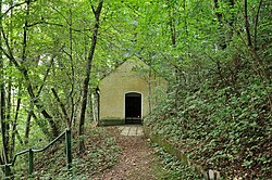 Die Hl.-Grabkapelle wurde wie die Kalvarienbergkirche zu Beginn des 18. Jahrhunderts am Abhang unterhalb dieser errichtet. Sie besitzt einen vierseitigen Dachreiter mit Schallfenstern und Pyramidendach. | BDA-Hist.: Q37786481 Status: § 2a Stand der BDA-Liste: 2024-06-15 Name: Hl.-Grabkapelle GstNr.: .269 |