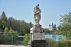Diese Skulptur wurde 1709 aus Untersberger Marmor von einem Salzburger Künstler geschaffen. | BDA-Hist.: Q37786705 Status: § 2a Stand der BDA-Liste: 2024-06-15 Name: Figurenbildstock hl. Johannes Nepomuk GstNr.: 291/3 |