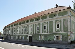 BDA-Hist.: Q38050053 Status: § 2a Stand der BDA-Liste: 2024-06-15 Name: Sog. Georgen- oder Posthaus mit Rossstall und Waaghaus sowie Gartenpavillon GstNr.: .32, 299/1 |