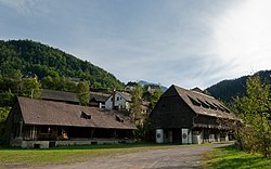 | Hackenschmiede mit Nischenkapelle Dieses Bild zeigt das in Österreich unter der Nummer 95922 denkmalgeschützte Objekt. ( Commons , de , Wikidata ) | Eigenes Werk | Grubernst | Datei:2012.10.19 - Landl - Hackenschmiede Erb 21 - 03.jpg |