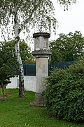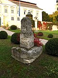 Am Aufgang zum Schloss ruht auf einer mächtigen Steinplatte ein quadratischer Sockel aus Sandstein, auf dem sich der Stumpf eines Pfeilers erhebt. Der genaue Zeitpunkt der Errichtung des ins 18. Jahrhundert datierten Denkmals ist unbekannt.[4] | BDA-Hist.: Q38148225 Status: § 2a Stand der BDA-Liste: 2024-06-15 Name: Fragment eines Bildstockes GstNr.: 2470/26 Fragments of a wayside shrine (Gobelsburg castle) |