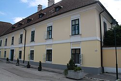 Zweigeschoßiger Bau aus dem späten 18. Jahrhundert mit schlichter Fassade.[Anm. 2] | BDA-Hist.: Q37957576 Status: Bescheid Stand der BDA-Liste: 2024-06-15 Name: Haus des Schlosshauptmannes GstNr.: 265 |