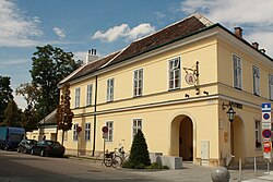 Tormauerhaus aus der Mitte des 18. Jahrhunderts mit Kordonbandgliederung | BDA-Hist.: Q37759788 Status: Bescheid Stand der BDA-Liste: 2024-06-15 Name: Tormauerhaus GstNr.: 205/2, 205/3 Tormauerhaus, Laxenburg |