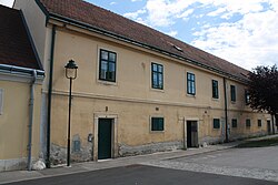 Später veränderter dreigeschoßiger Bau aus dem 18. Jahrhundert | BDA-Hist.: Q38038288 Status: § 2a Stand der BDA-Liste: 2024-06-15 Name: Barmherzige Schwestern-Kloster mit ehem. Fürst Schwarzenberg'schem Schloss GstNr.: 240, 237 Monastery Sisters of the Holy Cross Laxenburg |