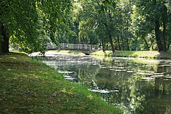 Die Fischerdörflbrücke ist die mittlere der drei Brücken über den Forstmeisterkanal. Anmerkung: Die Brücke ist nicht als Denkmal abgegangen, wird aber, da im Schlosspark liegend, nicht mehr extra aufgeführt. |