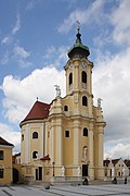 Ab 1693 neu erbauter barocker Zentralbau | BDA-Hist.: Q14912741 Status: § 2a Stand der BDA-Liste: 2024-06-15 Name: Kath. Pfarrkirche Kreuzerhöhung mit Kirchhof- sowie Terrassenanlage mit Figuren GstNr.: 222 Holy Cross Church (Laxenburg) |
