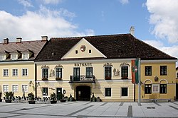 Zweigeschoßiger spätbarocker Bau, 1987/88 innen umgebaut | BDA-Hist.: Q38038233 Status: § 2a Stand der BDA-Liste: 2024-06-15 Name: Rathaus GstNr.: 220/1 Rathaus Laxenburg |