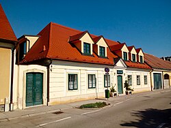 Mit Neudorferstraße 4 ältestes Haus in Laxenburg. Die heutige Bausubstanz mit Fensterfaschen stammt aus dem 17. Jahrhundert, gebaut auf älteren Grundmauern. | BDA-Hist.: Q38087544 Status: Bescheid Stand der BDA-Liste: 2024-06-15 Name: Bürgerhaus GstNr.: 168 Bürgerhaus Neudorferstraße 6, Laxenburg |