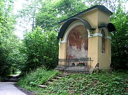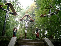 | Kalvarienberg/Kreuzweg Frauenberg, Erste, Zweite, Dritte Stationskapelle, Figurengruppe, Kreuzigungsgruppe | Eigenes Werk | E.mil.mil ( talk ) | Datei:Frauenberg Kalvarienberg.CIMG0579.jpg |