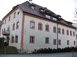 Das Gebäude wurde 1679 errichtet und diente ab dem Anfang des 19. Jahrhunderts als Sitz des Salzfaktors. Es wurde abgetragen, nach 2005 in die „Burgenwelt Ehrenberg“ versetzt und dort als Veranstaltungssaal adaptiert. Der eingeschoßige Bau über rechteckigem Grundriss ist teils in Bruchsteinmauerwerk, teils in Ständerbauweise aufgeführt und hat ein Pfettendach mit aufwendig gestaltetem Bundwerk. Die Innenräume sind teilweise original erhalten und weisen barocke Holzsäulen auf.[18] Das Gebäude ist seit der Versetzung zur Ruine Ehrenberg in der Gemeinde Reutte (Listeneintrag) geschützt. |