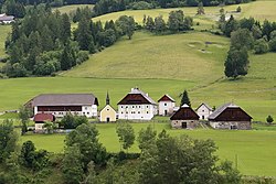 Ein Lungauer Gruppenhof mit Wohnhaus, großem Stall, Schafstall und gemauertem Getreidekasten. Das zweigeschoßige Wohnhaus stammt in wesentlichen Teilen wohl aus dem 16. Jahrhundert. 1983 wurde der Hofverband unter Denkmalschutz gestellt.[5] | BDA-Hist.: Q37911244 Status: Bescheid Stand der BDA-Liste: 2024-06-15 Name: Bauernhof, Ehem. Karnergut GstNr.: 366/1 Karnergut, Lessach |