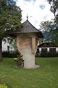 | Der denkmalgeschützte Bildstock neben dem Haus Kärntnerstraße 39 in Lienz ist der älteste, erhaltene bemalte Bildstock Tirols aus dem späten 14. Jahrhundert. Er besteht aus einem Rundpfeiler mit massivem, schindelgedeckten Nischenaufsatz der die Kreuzigung, die Anbetung durch die Heiligen Drei Könige, die Heiligen Dorothea und Katharina sowie zwei Bischöfe bzw. den Heiligen Christopherus zeigt. Dieses Bild zeigt das in Österreich unter der Nummer 3004 denkmalgeschützte Objekt. ( Commons , de , Wikidata ) | Eigenes Werk | Michael Kranewitter | Datei:Bildstock Kärntnerstraße (Lienz) II.JPG |