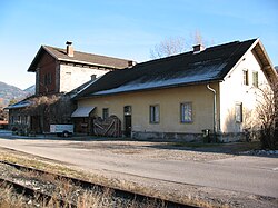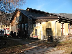 Das Heizhaus (auch Lokhalle, Lokremise, Lokschuppen) wurde 1871 erbaut und diente der Wartung und Reinigung der Lokomotiven.[4][5] | BDA-Hist.: Q64026455 Status: Bescheid Stand der BDA-Liste: 2024-06-15 Name: Lokschuppen GstNr.: .352 Lienz, Lokschuppen |