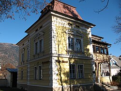 Das ehemalige Primarhaus entstand 1929 nach Plänen von Hans Menardi als Villa für den Primar des Bezirkskrankenhauses. Der zweigeschoßige Villenbau über nahezu quadratischem Grundriss ist von der asymmetrischen Anordnung der Türen und Fenster geprägt, die Südostecke wurde als über zwei Geschoße verlaufender Runderker ausgeführt. | BDA-Hist.: Q37760065 Status: § 2a Stand der BDA-Liste: 2024-06-15 Name: Primarhaus des Bezirkskrankenhauses Lienz GstNr.: .110 |