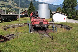 Die handbetriebene Drehscheibe der ehemaligen Zugförderungsstelle Lienz diente dem Wenden der Dampflokomotiven, um in den Heizhausbereich einfahren zu können. Die Konstruktion basiert auf einem Erlass des k. k. Eisenbahnministeriums vom Juli 1906.[5] | BDA-Hist.: Q64026457 Status: Bescheid Stand der BDA-Liste: 2024-06-15 Name: Lokomotiv-Drehscheibe GstNr.: 886/1 Lienz, Lokomotivdrehscheibe |