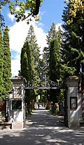 Der Neue Friedhof wurde 1900/1901 angelegt, 1963 wurde er erweitert, dabei wurden die Aufbahrungshallen nördlich der Arkaden errichtet. 1984 wurde er abermals vergrößert, 1988 erfolgte die Anlage des Urnenfriedhofs. Zur Kapelle führt eine zentrale Achse, der breite Mittelweg ist durch eine dichte Zypressenallee begrünt. Vier quer verlaufende Wege teilen die Grabfelder in insgesamt zehn Blöcke mit lockerem Baumbestand. An der Nordwestecke Zugang zu den Soldatenfriedhöfen und zum neuen Friedhofsteil mit schmiedeeisernem Eingang.[30][31] | BDA-Hist.: Q37948539 Status: § 2a Stand der BDA-Liste: 2024-06-15 Name: Neuer Friedhof GstNr.: 3/2[32] Neuer Friedhof, Lienz |