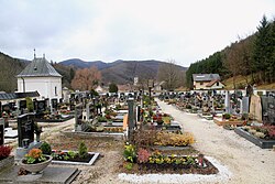Der Friedhof wurde 1786 südlich des Meierhofes angelegt und 1888 sowie 1893 erweitert. Über der Prälatengruft wurde 1888 eine Gruftkapelle in Neorenaissance-Formen errichtet. | BDA-Hist.: Q38126066 Status: § 2a Stand der BDA-Liste: 2024-06-15 Name: Friedhof christlich GstNr.: 111/2, 111/5, 111/7, 114, .88, .68 |