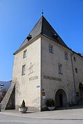 Durch den spätgotischen Torturm aus dem 14. Jahrhundert verlief bis 1789 die heutige Dörfl- bzw. Babenbergerstraße. Der dreigeschoßige Bau über quadratischem Grundriss hat ein verschindeltes Pyramidendach und dient seit 1960 als Bezirksheimatmuseum Lilienfeld, Mathias-Zdarsky-Skimuseum und Archiv. | BDA-Hist.: Q37917856 Status: § 2a Stand der BDA-Liste: 2024-06-15 Name: Heimatmuseum, Dienerturm GstNr.: .9/1 Dienerturm Lilienfeld |