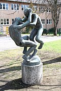 Die Bronzeplastik auf einem runden Granitsockel stammt vom in Linz geborenen Bildhauer Walter Pochlatko und zeigt zwei nackte, rangelnde Buben. Anmerkung: Im Statistischen Bezirk Neue Heimat |