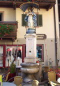 Im Markte stand von alters her ein Brunnen. 1772 wird statt des hölzernen ein Marmorbrunnen mit einer Marienstatue als Bekrönung aufgestellt, aber der Stein hatte sich nicht bewährt, weshalb der Brunnen 1802 wieder abgetragen und durch einen hölzernen ersetzt wurde. 1908 wurde aber im Zuge einer Ortsverschönerung ein Brunnen in Untersberger Marmor mit der alten Frauenstatue erstellt.[2] | BDA-Hist.: Q38102993 Status: § 2a Stand der BDA-Liste: 2024-06-15 Name: Marktbrunnen GstNr.: 264/2 Marktbrunnen, Lofer |