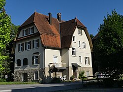 Die Jugendstilvilla wurde zu Beginn des 20. Jahrhunderts für den Fabrikanten Karl Schmalzigaug errichtet.[4] | BDA-Hist.: Q105646794 Status: Bescheid Stand der BDA-Liste: 2024-06-15 Name: Anlage Villa Schmalzigaug GstNr.: 717/7 |