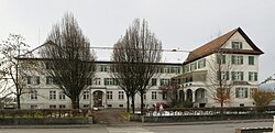 Die Volksschule Hasenfeld wurde 1964 fertiggestellt.[5] | BDA-Hist.: Q107718957 Status: Bescheid Stand der BDA-Liste: 2024-06-15 Name: Volksschule Hasenfeld GstNr.: 5999, 6004 Volksschule Hasenfeld (Lustenau) |