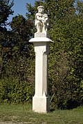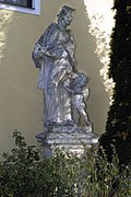 Auf einem prismatischen Sockel steht, von einer Putte begleitet, eine Figur des hl. Johannes Nepomuk. | BDA-Hist.: Q105640674 Status: § 2a Stand der BDA-Liste: 2024-06-15 Name: Figur heiliger Johannes Nepomuk GstNr.: 870 |
