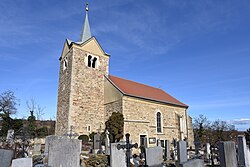 Der Friedhof mit zahlreichen barocken Grabsteinen ist um die Kirche angeordnet. Drei der Grabsteine aus den Jahren 1699, 1761 und 1841 sind in Nischen außen an der Friedhofsmauer eingelassen. | BDA-Hist.: Q37813853 Status: § 2a Stand der BDA-Liste: 2024-06-15 Name: Friedhof christlich GstNr.: 1, 178/2 |