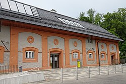 Der langgestreckte Steinbau mit Sichtziegelgliederung stammt aus dem späten 19. Jahrhundert. Er beherbergt nunmehr Gemeindeamt und Heimatmuseum. | BDA-Hist.: Q38003538 Status: § 2a Stand der BDA-Liste: 2024-06-15 Name: Reithalle GstNr.: 50/1 Reithalle Mauerbach |