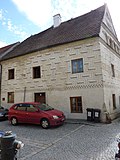 Giebelständiges zweigeschoßiges Eckhaus aus dem 15. und 16. Jahrhundert, perspektivischer Sgraffitodekor aus dem 16. Jahrhundert. | BDA-Hist.: Q37958175 Status: Bescheid Stand der BDA-Liste: 2024-06-15 Name: Göttweigisches Haus und Teile des römischen Kastells GstNr.: .24 Göttweigisches Haus, Mautern an der Donau |