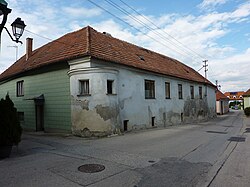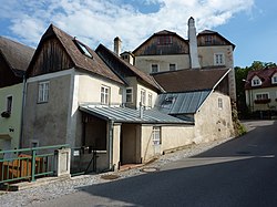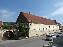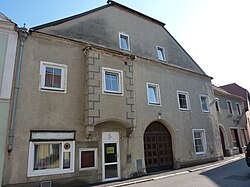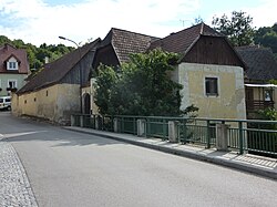 Ein- bis zweigeschoßiger Bruchsteinbau am Bachgraben. Trakte mit gestaffelten Fronten, Doppelgiebel und Schopfwalmdächern. | BDA-Hist.: Q38100444 Status: Bescheid Stand der BDA-Liste: 2024-06-15 Name: Wohnhaus GstNr.: .11 Mauternbach 18 (Mautern an der Donau) |