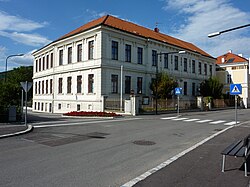 Frei stehendes Gebäude mit Mittelrisalitfassade aus dem Jahr 1891. | BDA-Hist.: Q38128771 Status: § 2a Stand der BDA-Liste: 2024-06-15 Name: Volksschule GstNr.: .144 |