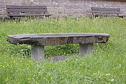 Der sogenannte Ausrufstein, eine leicht erhöhte Steinplattform mit einem Gewicht von 1,8 Tonnen, wurde laut einem Relief an der Stirnseite im Jahr 1595 gesetzt und diente bis zur Einführung des Amtsblattes im Jahr 1919 als Ort zur Bekanntgabe wichtiger Mitteilungen durch den Amtsdiener (‚Weibel‘). | BDA-Hist.: Q17521417 Status: § 2a Stand der BDA-Liste: 2024-06-15 Name: Kleindenkmal Ausrufstein GstNr.: 2802/2[10] Ausrufestein Mittelberg |