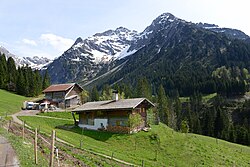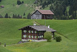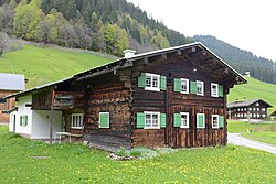 Der Bergbauernhof an der Adresse Höfle 47 ist ein Paarhof von walserischem Bautyp.[8] | BDA-Hist.: Q37893190 Status: Bescheid Stand der BDA-Liste: 2024-06-15 Name: Bauernhof, Paarhof GstNr.: 3672 |