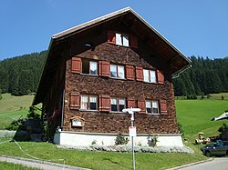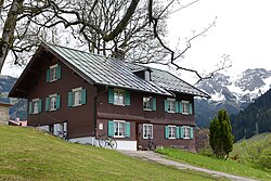 | Wohnhaus, ehem. Mesner- und Schulhaus Walserstraße, Mittelberg 71 in Mittelberg- Hirschegg , Kleinwalsertal. | Eigenes Werk | böhringer friedrich | Datei:Ehem. Mesner- und Schulhaus, Walserstraße, Mittelberg 71, Böhringer.JPG | |