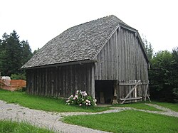 Das Freilichtmuseum Mondseer Rauchhaus zeigt die Gehöftform des Rauchhauses. Der in Holzblockbauweise errichtete Bauernhof vereint Wohnhaus, Stall und Stadel. Besonders ist der fehlende Rauchfang. Der Rauch zieht frei durch das Dach ab und trocknet das im Obergeschoß gelagerte Getreide. | BDA-Hist.: Q811288 Status: Bescheid Stand der BDA-Liste: 2024-06-15 Name: Freilichtmuseum Mondseer Rauchhaus, Bischofergut GstNr.: 16/6 Bauernmuseum Mondsee |